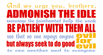 "And we urge you brothers..warn those who are idle. Encourage the fainthearted. Help the weak. Be patient with everyone." A set of instructions. A set of instructions so easy but so often overlooked in the area of relationship.