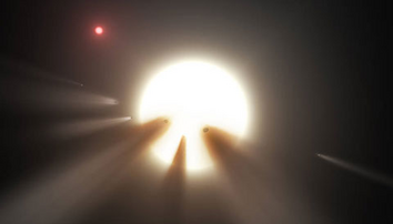 Now, I have no idea why this excites some people, but if you're so far bored to tears, just listen to the conclusion of these so-called "planet hunters." They noticed over 100 days, dozens of uneven light fluctuations which they hypothesized must have been caused by large objects passing across its face. So far, still fairly ho-hum. Right?