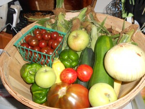 Our part of the country (Southeast Indiana) has been experiencing some drought, but nothing as severe as our neighbors to the west. As we have now begun harvesting from our garden, and being blessed by the giving hearts of other gardeners in our church family, the explosion of color and variety in this basket on our kitchen counter just reminded me of how creatively good and glorious is our God!